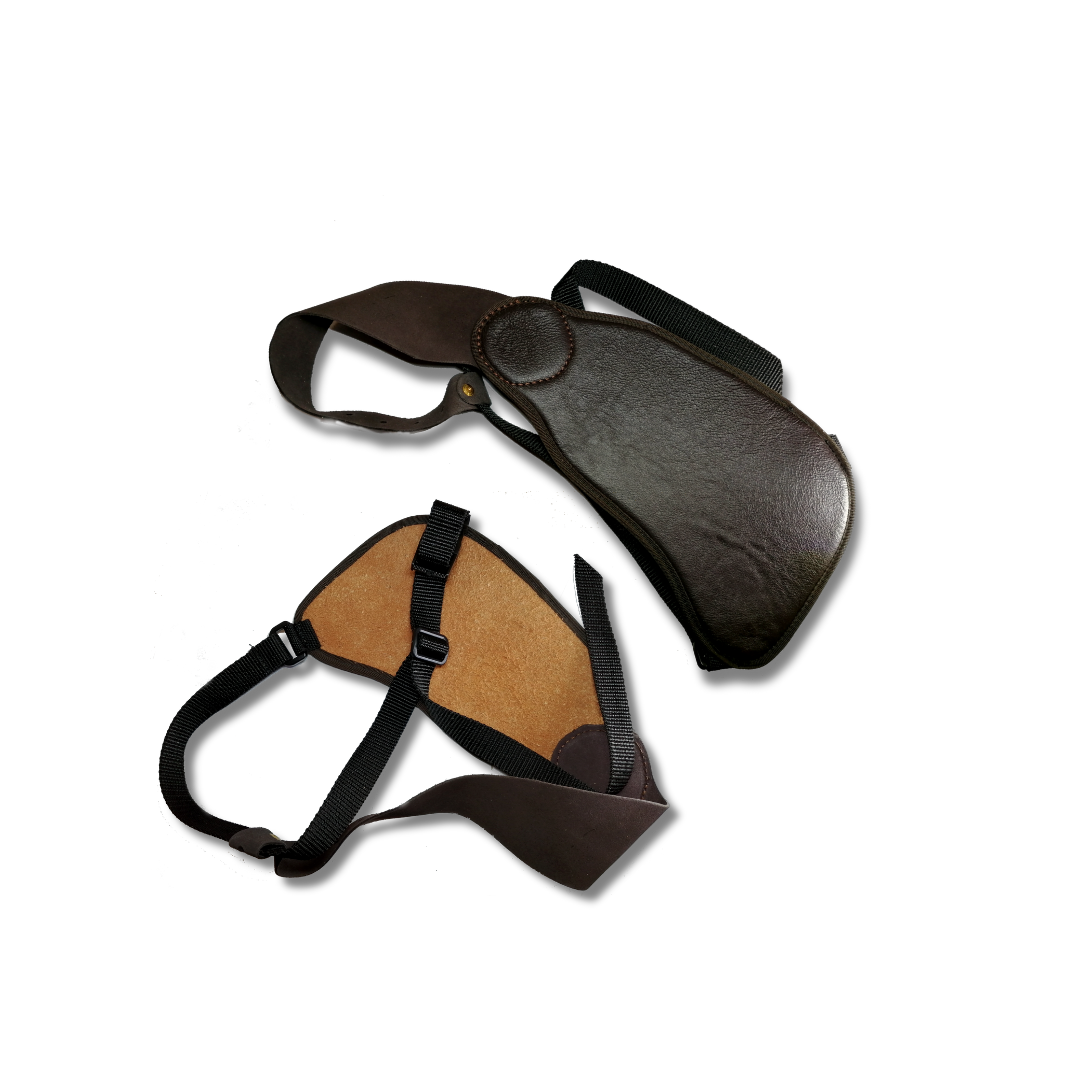 A recoil shield is a padded device worn by a shooter to absorb and disperse the impact of a firearm's recoil, protecting the shoulder from bruising and pain. Unlike a standard recoil pad that is attached to a gun's stock, a recoil shield is worn on the body and can be used with multiple firearms.